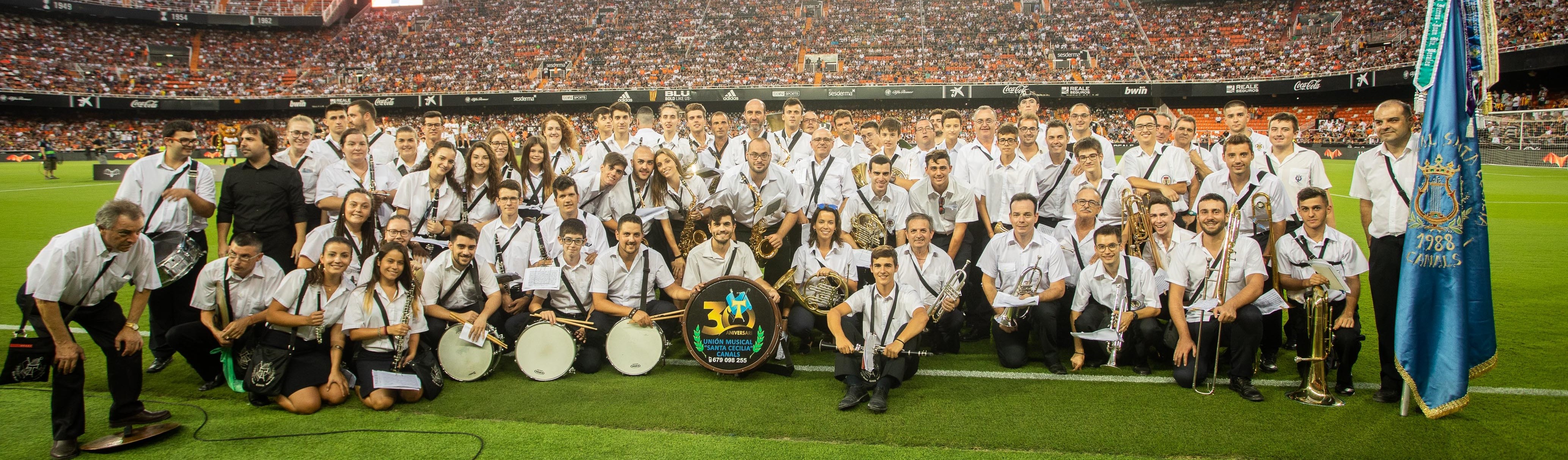 El València Club de Futbol, des de fa un temps, dóna visibilitat i valor a les bandes de música valencianes. En aquesta ocasió, en un dels actes més importants de la temporada, concretament en la presentació dels jugadors i amb el partit conegut com Trofeu Taronja, coincidint en l’any del Centenari del club, la Unió Musical Santa Cecilia ha sigut la protagonista amb el seu repertori musical. Amb aquest esdeveniment, la UMSC és la banda que més vegades ha estat al Mestalla.