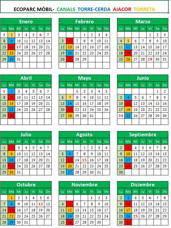 Ubicació: dilluns a Canals (Pont del Riu), dimarts alterna entre La Torreta (plaça de l'Institut), Torre-Cerdà (baixada del Camre) i Aiacor (al costat del Centre Social). Consulta el calendari.