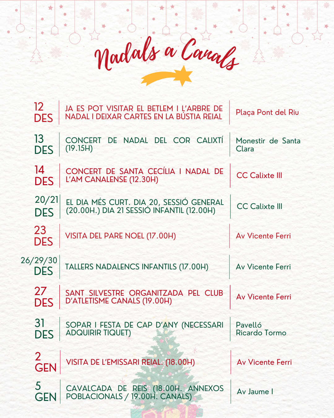 Amb açò hem encetat el Nadal en Canals, amb varietat d’activitats fins al 5 de gener, dia de la Cavalcada de Reis. Descobreix tota la programació: