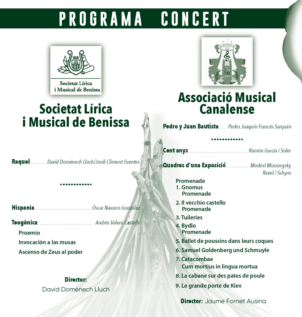 I per a finalitzar amb el cap de setmana, l’Associació Musical Canalense serà l’encarregada d’organitzar i participar, junt amb la Societat Lírica i Musical de Benissa, en la 54 edició de Bandes de Música de Sant Antoni Abat a les 18:30h al pavelló municipal.
